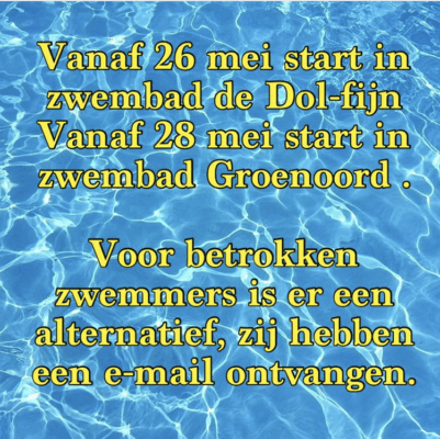 Helaas hebben we te horen dat zwembad Dol-Fijn nog niet open is voor verenigingen. En Lees meer...